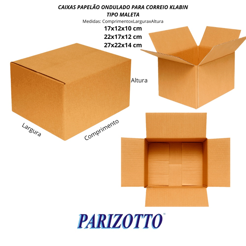 CAIXAS PAPELÃO PARA CORREIOS E-COMMERCE 17x12x10, 22x17x12 e 27x22x14cm TIPO MALETA KLABIN
