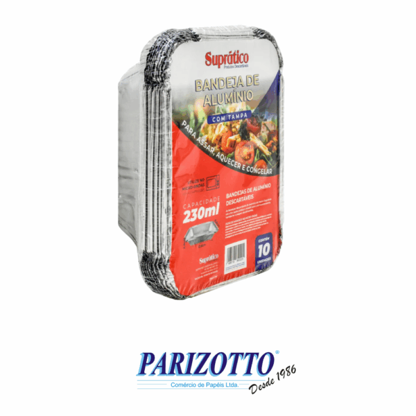 MARMITEX ALUMINIO RETANGULAR COM TAMPA 230ml PTC/10UN SUPRATICO